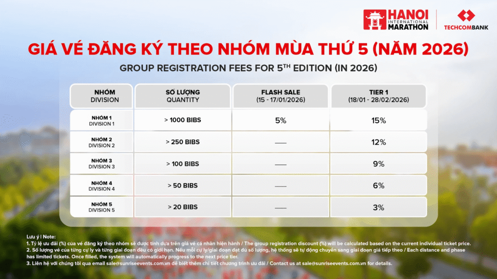 BẢNG GIÁ ĐĂNG KÝ MÙA THỨ 5 (2026) GIÁ VÉ ĐĂNG KÝ CÁ NHÂN GIÁ VÉ ĐĂNG KÝ NHÓM (Dành cho Doanh nghiệp và Câu lạc bộ chạy) Techcombankadmin Cùng POPS lan toả cảm hứng bứt phá trên đường chạy