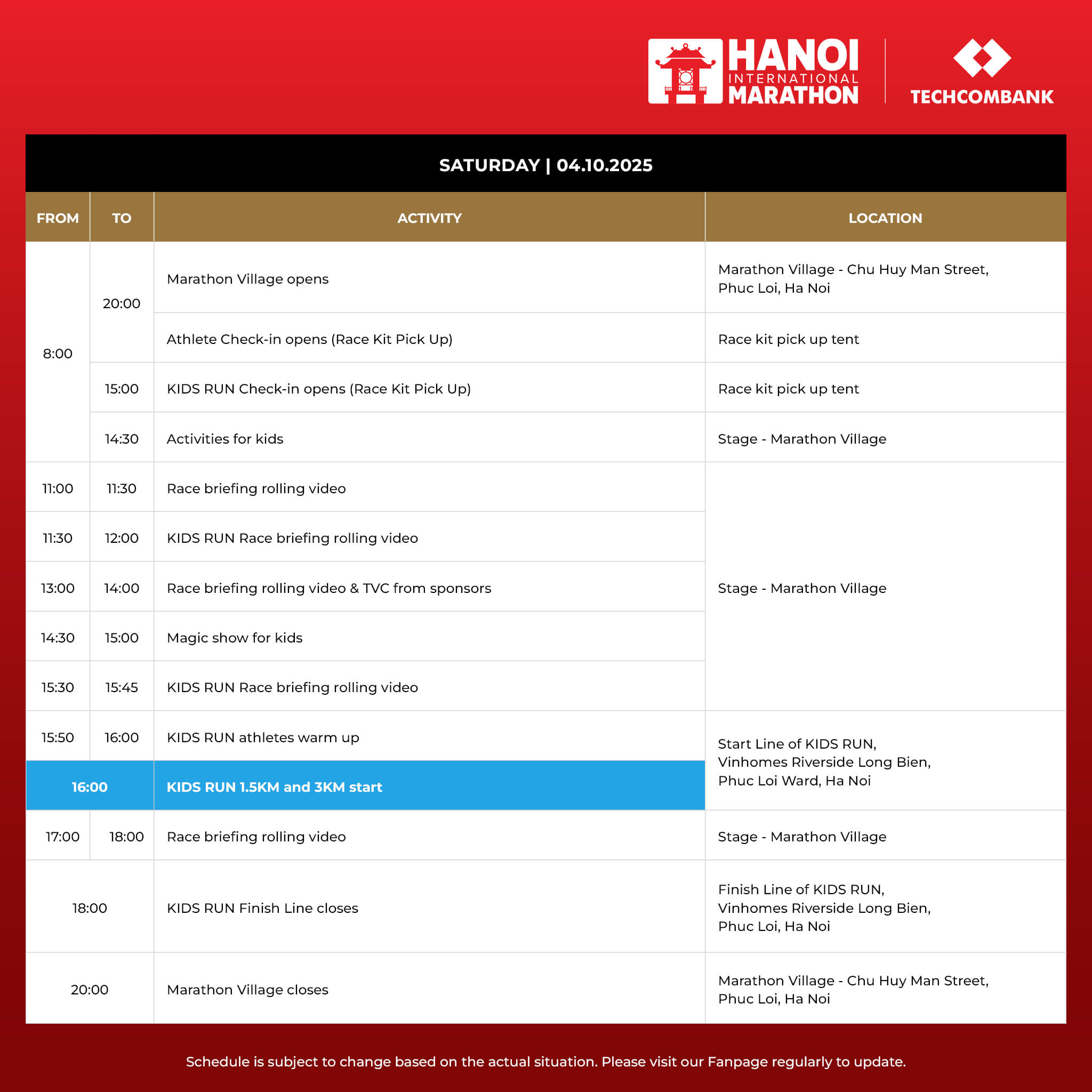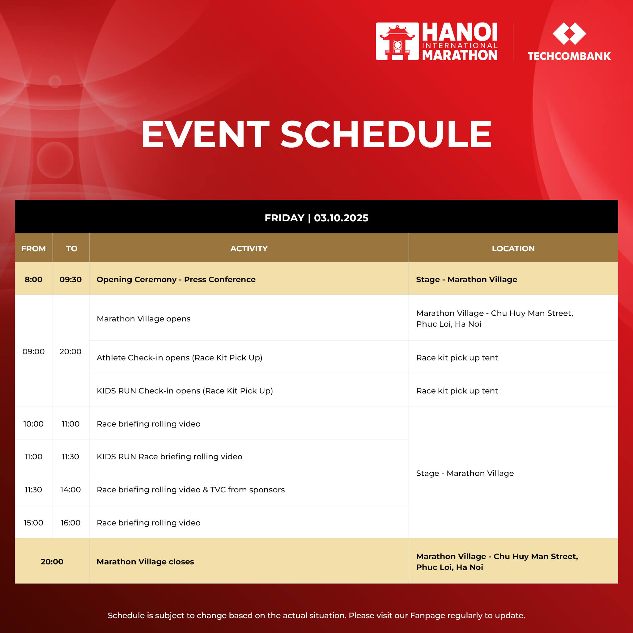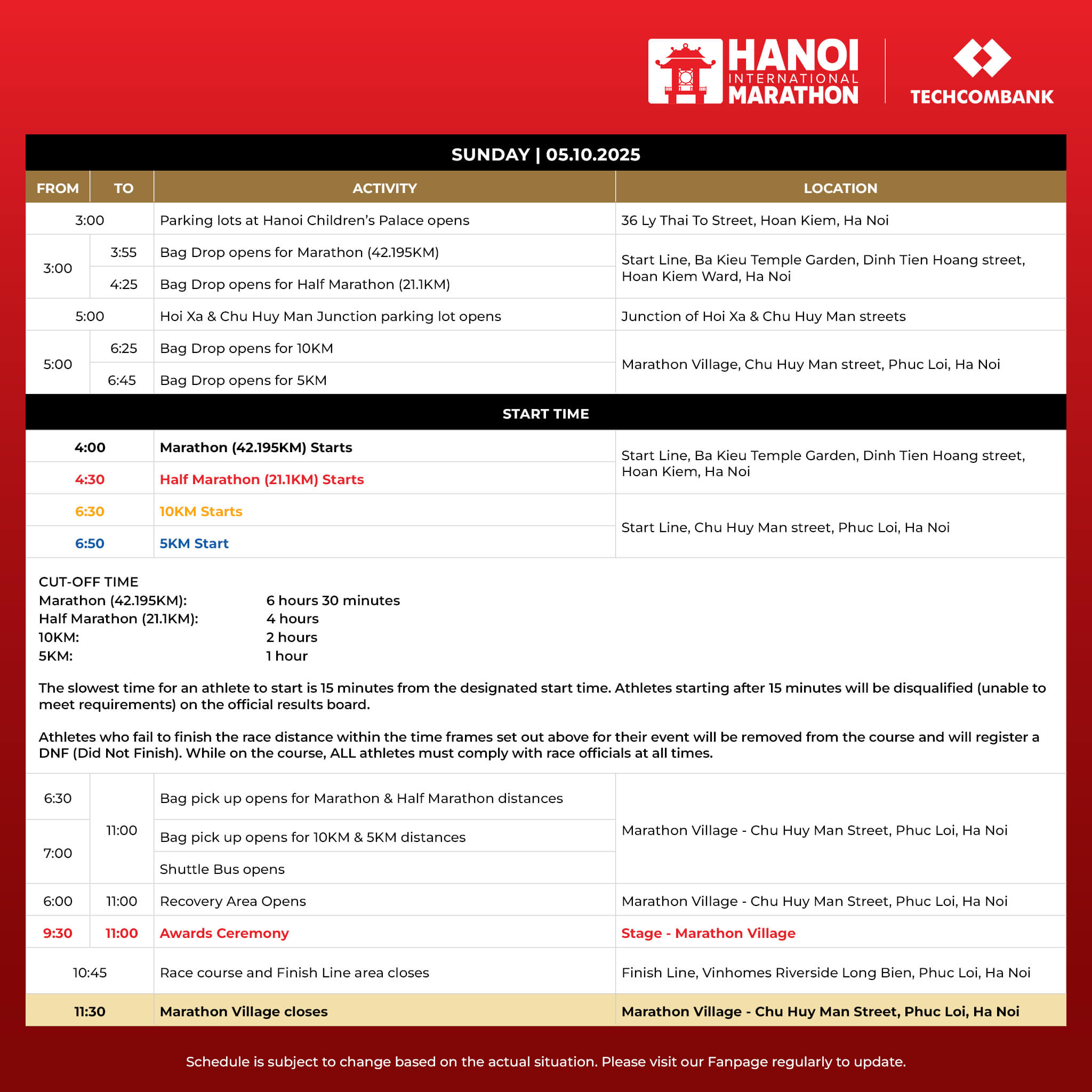 2025 EVENT SCHEDULE OF THE 4RD EDITION! HEY RUNNERS, THE EVENT SCHEDULE IS HERE! Click vào hình để xem chi tiết Techcombankadmin MARATHON’S TRACK ATHLETE CHECK-IN PROCEDURE
