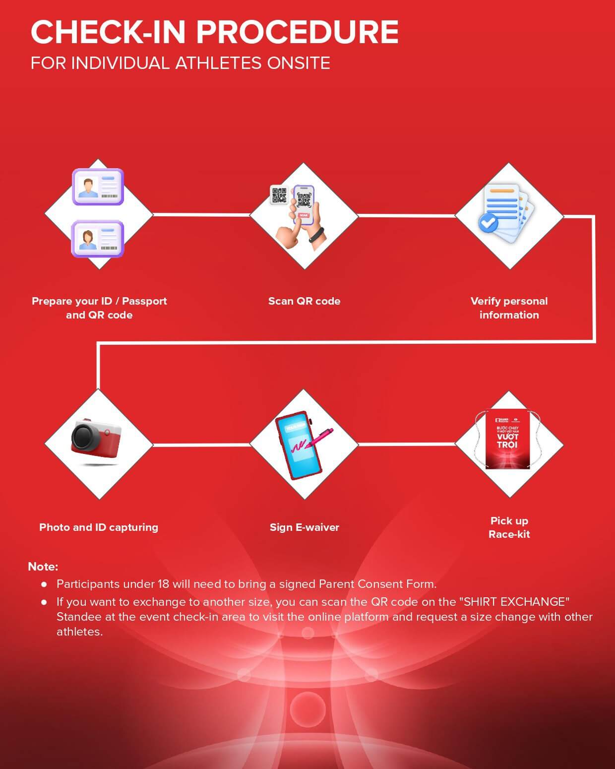 Please review and keep the Athlete Check-in Procedure below to ensure a smooth registration process at the event and to successfully join the race this year.