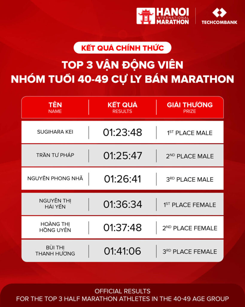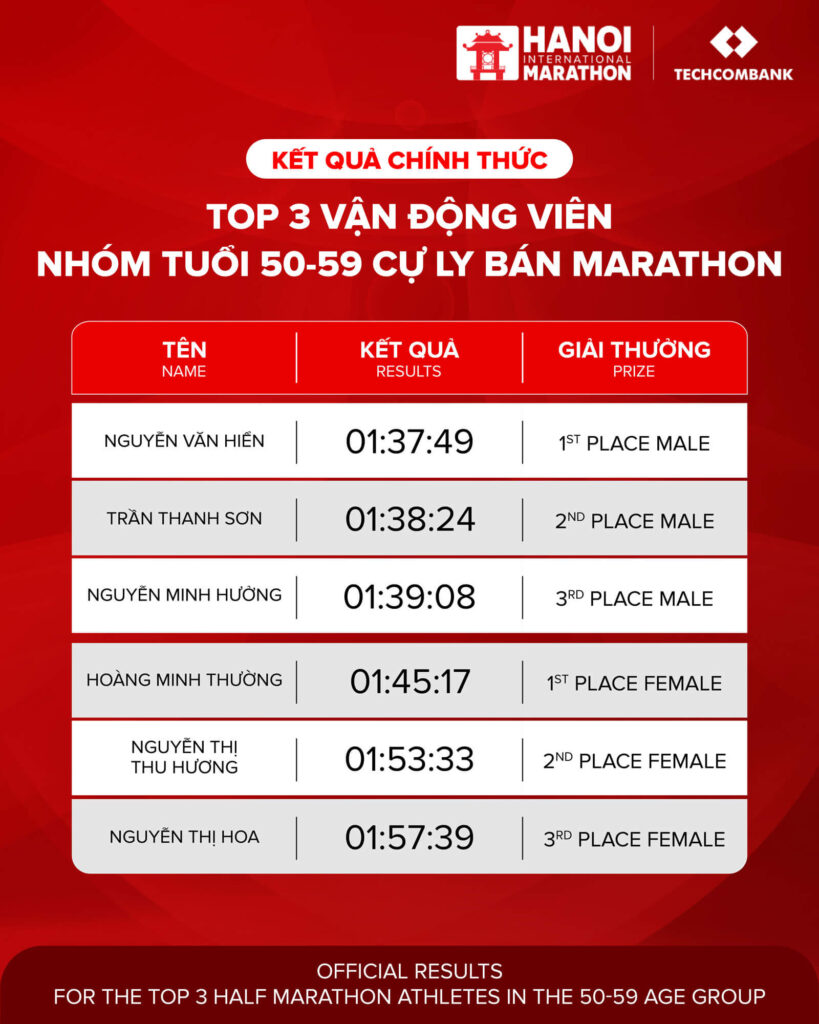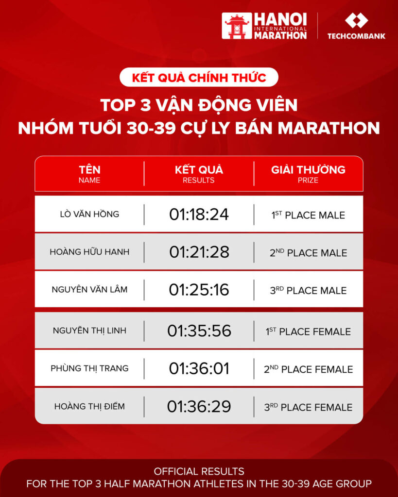 KẾT QUẢ CHÍNH THỨC GIẢI MARATHON QUỐC TẾ HÀ NỘI TECHCOMBANK MÙA THỨ 4 2025 – CỰ LY BÁN MARATHON Techcombankadmin KẾT QUẢ CHÍNH THỨC GIẢI MARATHON QUỐC TẾ HÀ NỘI TECHCOMBANK MÙA THỨ 4 2025 – CỰ LY MARATHON Anessa